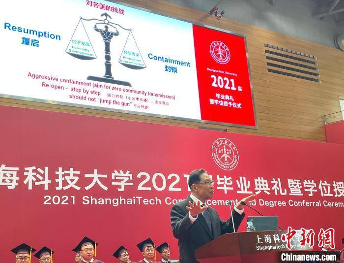 中国工程院院士钟南山3日在沪参加上海科技大学2021届毕业典礼 郑莹莹 摄