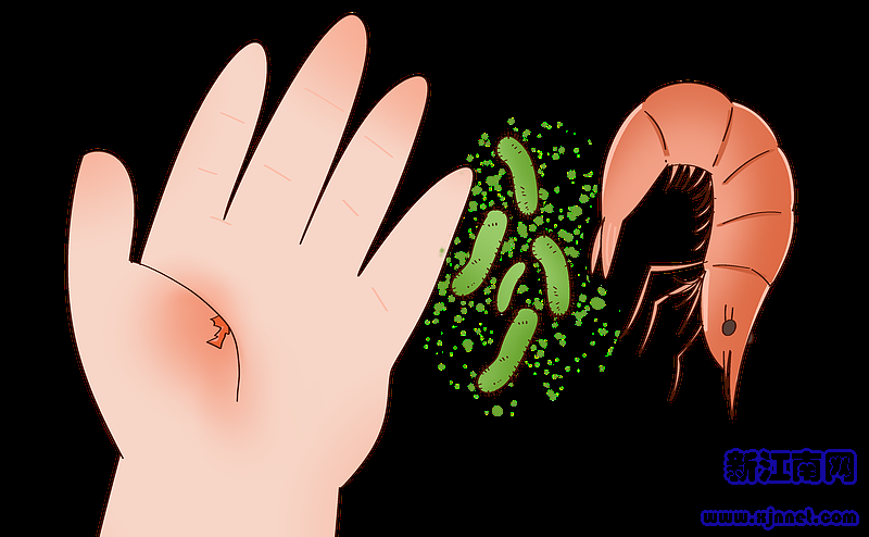 若不小心被虾、蟹、鱼等刺伤,应将淤血挤出,然后用清水冲洗。注意,创伤弧菌是嗜盐性弧菌,切勿用生理盐水清洗伤口,以免加重感染。若出现疼痛、瘙痒、肿胀、腹泻或发热等症状,应立即就医。