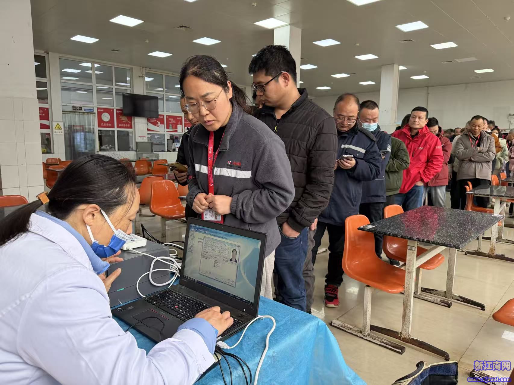 上午8点20分,距离体检正式开始还有10分钟,江苏太古可口可乐有限公司的食堂门口已暖意融融。身着各式工服的职工们排起长队,冬日的寒意丝毫未减大家对健康守护的期盼。与此同时,南京市职业病防治院9位医务人员正争分夺秒布置体检现场,摆放设备、整理表格、调试仪器,各项准备工作紧张而有序。