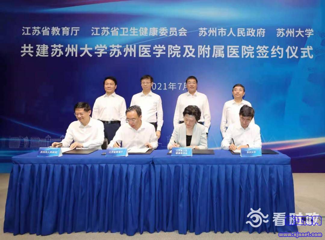 签约仪式在苏州大学独墅湖校区举行。苏州大学医学教育已有109年历史,2008年成立了苏大医学部。在这一基础上,根据此次合作协议,各方将依托各自职能、发挥资源优势,赋予苏州大学苏州医学院相对独立管理权限,在教育教学、科学研究、学科建设、人才培养和师资队伍建设等方面,加大支持力度。省教育厅将对苏州大学苏州医学院的改革发展和苏州大学进行医学教育管理体制改革给予支持和帮助,指导制定发展规划和学科建设规划,进一步加大政策和经费支持;省卫健委将支持苏州大学附属第一医院、附属儿童医院加强医教协同管理,深化体制机制改革;苏州市政府将把苏州大学苏州医学院及附属医院的改革发展纳入全市总体规划,并提供政策和资金支持,用于院士级人才引进、科技平台建设、高水平学科建设以及拔尖人才培养等;苏州大学将进一步理顺体制机制,大力推进医教协同,促进苏州大学苏州医学院与附属医院紧密结合、一体化发展。