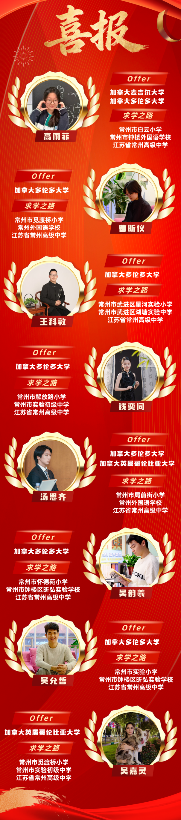 一纸捷报,万千耕耘。每一封录取通知书的背后,是师生们无数个日夜的潜心钻研,是课堂内外的智慧交锋,更是省常中百年文脉在新时代的生发延续。这不仅是学子们与世界对话的入场券,更是省常中国际课程班育人理念的生动注脚——我们不仅关注知识的传授,更着眼于人格的塑造与视野的拓展。从科学完善的课程架构到中西融合的师资团队,从个性化的升学指导到浸润式的成长氛围,省常中国际课程班始终致力于为每一位学子搭建通向世界的桥梁。 在此,谨向辛勤耕耘的教师团队、默默支持的家长朋友,以及长期关心学校发展的社会各界,致以最诚挚的谢意! 再次祝贺以上同学!愿你们以此为序,心怀寰宇,在更广阔的学术天地里沉潜钻研、勇敢探索,让青春在不设限的追寻中熠熠生辉。