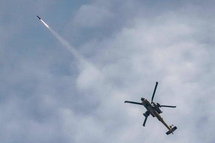 3月18日,一架以军直升机在以色列北部与黎巴嫩边境地带上空飞行时发射弹药。新华社/法新