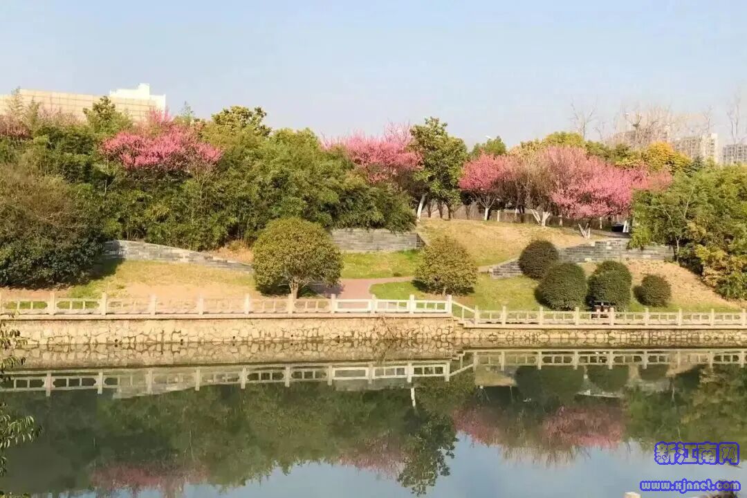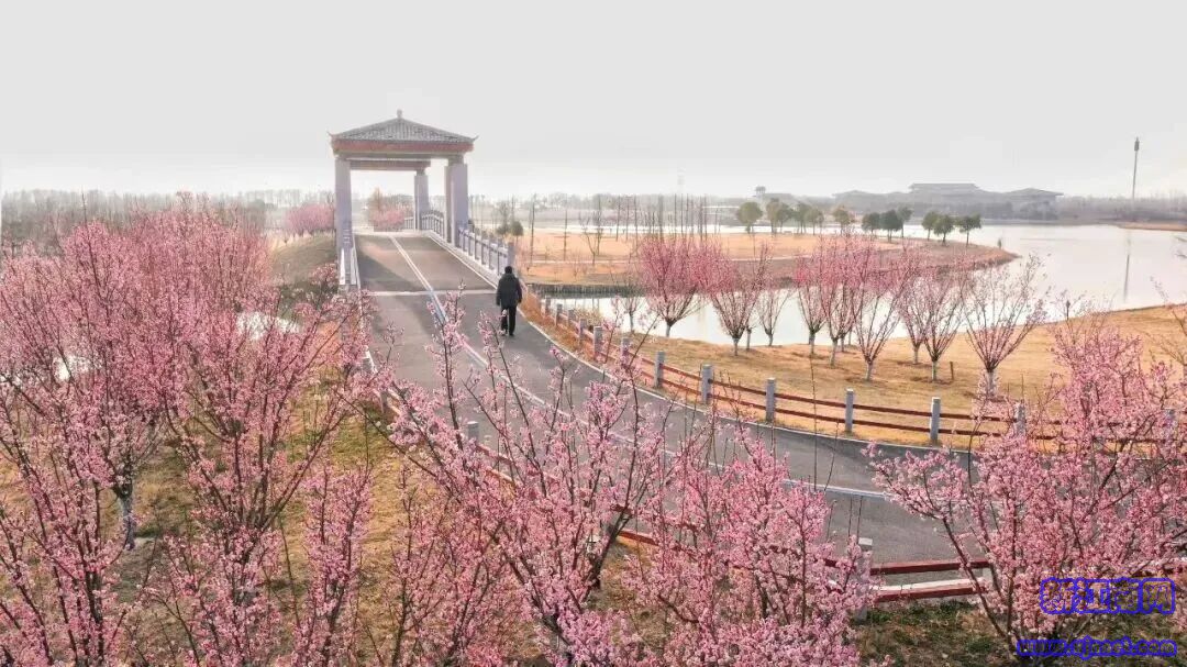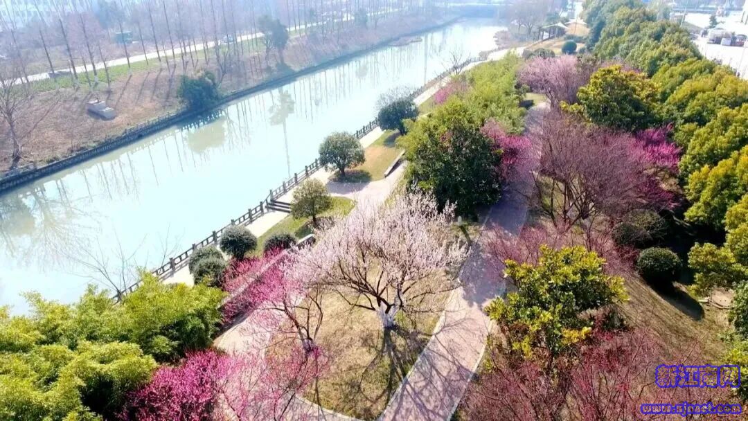 河道旁的梅树绽放,来河边散步就能体验“走花路”。傍晚时分,晚霞与梅花共染一河春水,尤为浪漫。