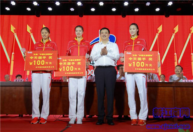 在集团成立15周年之际,为弘扬女排精神,集团为女排奥运冠军选手颁发300万元奖励