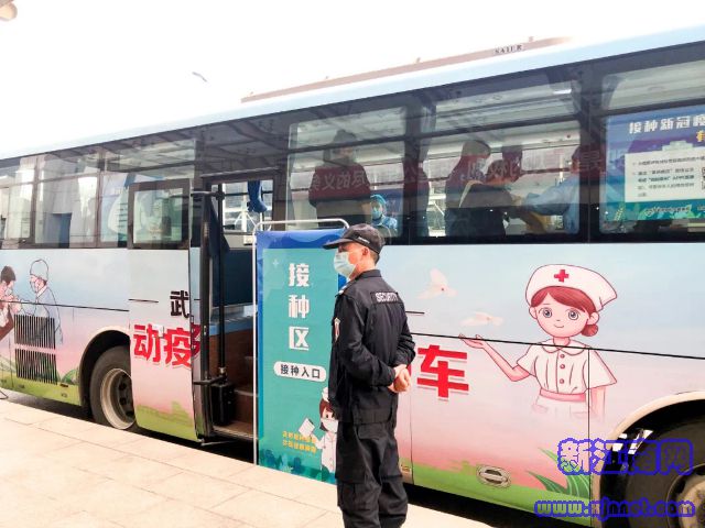 车外,设立登记录入点,接种人员有序排队、登记、上车完成疫苗接种,留观30分钟、没有不良反应即可离开。