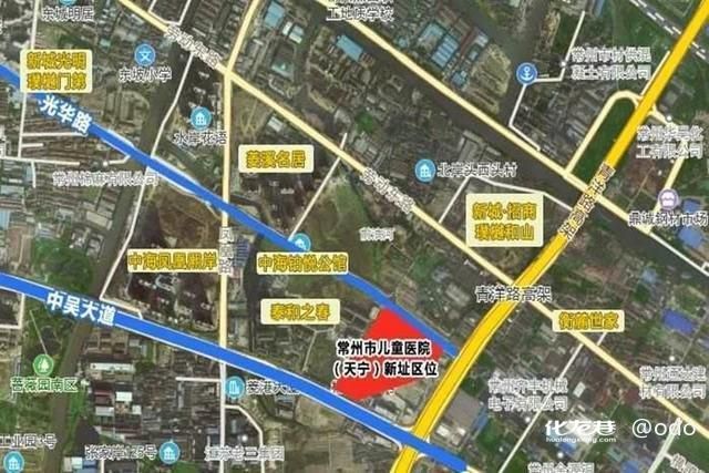 常州市儿童医院新址位于常州市雕庄街道凤凰新城,具体位置位于中吴大道路口北侧,青洋路高架西侧,光华路南侧,优胜路东侧,总占地面积约100亩,总建设面积约为13.92万平方米,规划设置床位850张,未来将是一座现代化高水平儿童医院。