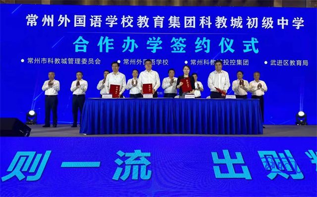 签约仪式上,科教城管委会与武进区教育局、常州外国语学校、常州市局前街小学、常州市机关幼儿园进行合作签约,共同致力于打造高质量的基础教育品牌学校,保障科教城高层次人才子女和周边居民适龄儿童“在家门口能够就近入学”的愿望变为现实。
