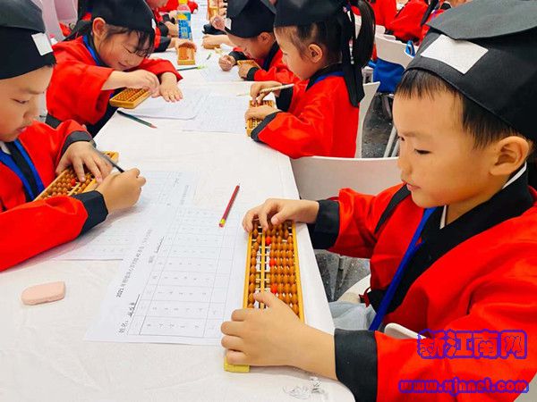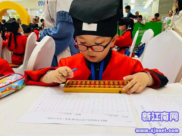 参赛的孩子们手持算盘,身着汉服,在裁判老师的一声令下,手指在算盘上舞动起来,一个个答案跃然纸上。珠心算不仅是一门国学技艺,更能够启迪孩子的心智和速算的智慧。孩子们在活动中充分展现了珠心算这门古老的国学文化,现场老师和孩子们还为观众们表演了古诗词朗诵、古筝演奏、歌唱等节目。