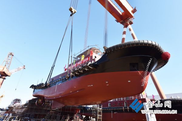 10月10日,江苏省镇江船厂(集团)有限公司以特有的吊装下水方式,顺利完成了为舟山市浙石化舟港拖轮有限公司、连云港徐圩港口投资集团有限公司建造的4艘全回转拖船的下水,创造单日船舶吊装下水数量新纪录,掀起了决战四季度、冲刺全年目标任务的生产建设新高潮。据悉,镇江船厂四季度还将完成23艘船的建造交付任务。朱大智 高文君 文雯 摄影报道
