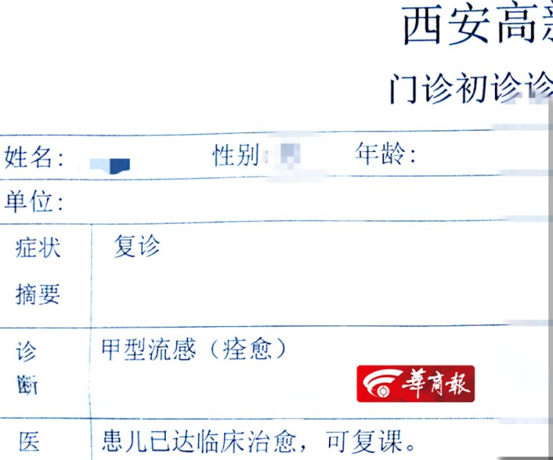 之后,华商报记者致电西安高新区教育体育局,辗转多个科室,最后联系到专门负责传染病防治的科室,工作人员称直接前往社区卫生服务中心即可,医院不会给孩子开具复课证明。“社区卫生服务中心有一个公共卫生科,专门负责该片区的传染病防治,公共卫生科工作人员能在‘大疫情网’上查询到孩子的甲流确诊时间等相关信息,传染病都具有隔离期,流感的隔离期为7天,发病7天后,就能由社区卫生服务中心开具复课证明,之后由学校校医查验,没问题后就能上课。这属于复课查验的制度,是所有传染病闭环管理都要经历的环节。”