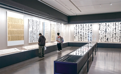 一楼方厅包含天地绘心、含弘写心、意匠之手板块,以笔墨为天地文心立象,以书法接续“绝学”,以东方道艺心手相应、技道相生,着力推动中华优秀传统文化创造性转化和创新性发展的艺术实践。