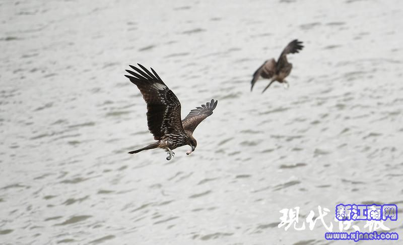 在长江江苏段,数只黑鸢或俯冲掠过江面,或飘然翱翔于天空,甚至是与长江江豚同个框,是江畔最常见的风景。