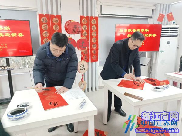中国江苏网2月6日盐城讯 岁末添喜,年味渐浓。为弘扬中华优秀传统文化,营造欢乐祥和的节日氛围,深化校社共建融合,切实将温暖与祝福送到群众身边,2月4日上午,盐南高新区黄海街道南苑社区携手盐城市第一小学,在社区新时代文明实践站共同开展“翰墨飘香送春联 经典诵读迎新春”主题活动。盐城市第一小学党委书记秦岭、校长祁生洋、副校长蔡绪稳,以及黄海街道、南苑社区相关负责人出席活动,该校成达社团师生代表、社区党员志愿者及辖区居民齐聚一堂,以笔墨传情、以诵读寄意,共迎马年新春。