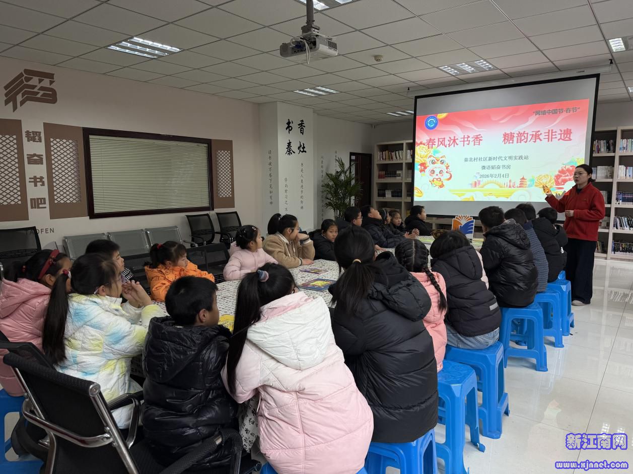 中国江苏网讯 翰墨飘香润心田,非遗糖韵甜秦北。近日,秦灶街道秦北村社区韬奋书吧内暖意融融,笑语盈盈。一场以“春风沐书香,糖韵承非遗”为主题的“网络中国节 春节”全民阅读春风行动如约而至。