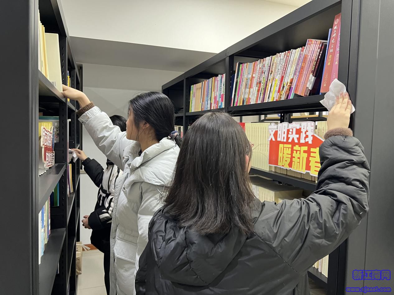 同扫庭中尘,整洁迎新春。手工糖制作活动的欢声笑语刚刚落下帷幕,青少年们又纷纷拿起扫帚、抹布等清洁工具,走进社区“小候鸟”图书室,以动手打扫的方式迎接新的一年,用劳动让阅读空间焕然一新。室外虽是寒风料峭,却掩不住少年们投身服务的热情与活力。图书室内,大家三两成组,默契配合、井然有序。有人弯腰仔细擦拭书架角落的灰尘,有人合力整理桌上零散的书籍,每一个角落都被认真打扫,每一本图书都被轻柔归位。忙碌的身影与压低的笑语在书香之间轻轻交织,属于青少年的蓬勃朝气在这方安静的空间里悄然绽放,成为冬日里一幕格外温暖的画面,也为社区营造出整洁宁静的阅读环境。