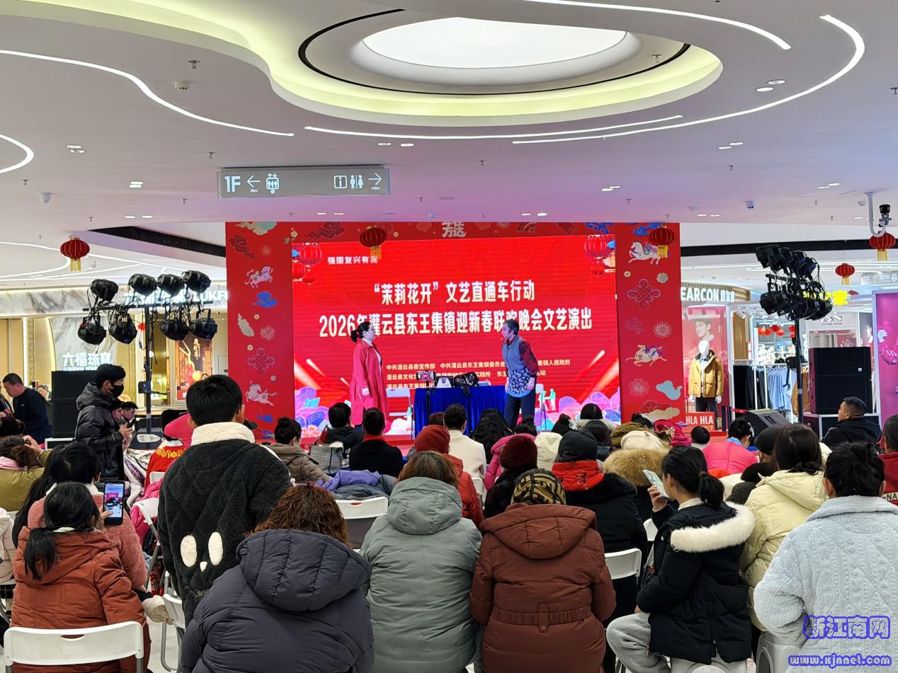 中国江苏网2月8日连云港讯 马蹄声声辞旧岁,欢歌阵阵迎新春。2月6日晚,灌云万达广场化身一片欢乐的海洋,2026年马年“茉莉花开·新春晚会”在此热烈举行。现场人潮涌动,近千名群众欢聚一堂,处处洋溢着喜庆祥和的节日氛围。