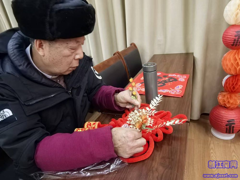 活动伊始,退役军人在工作人员的贴心指导下,手持备好的中国结与新春装饰,根据个人喜好精心搭配、巧手插制,大家边动手边轻松交流,指尖翻飞间,一个个缀满新春装饰的中国结接连成型,现场红韵满堂,年味浓郁,尽显喜庆祥和的美好氛围。