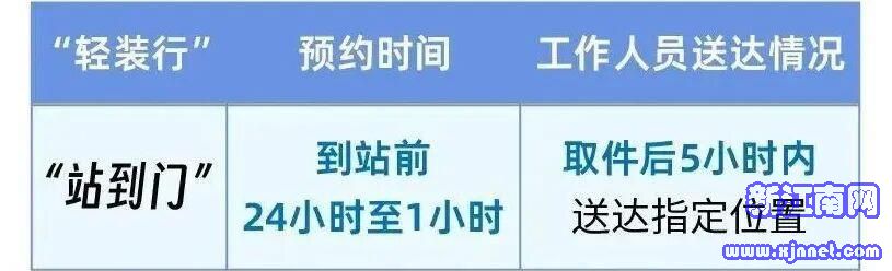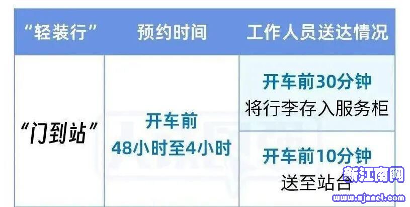 注意事项:“轻装行”服务目前仅限于已购车票且在同城距离车站35公里以内的旅客。