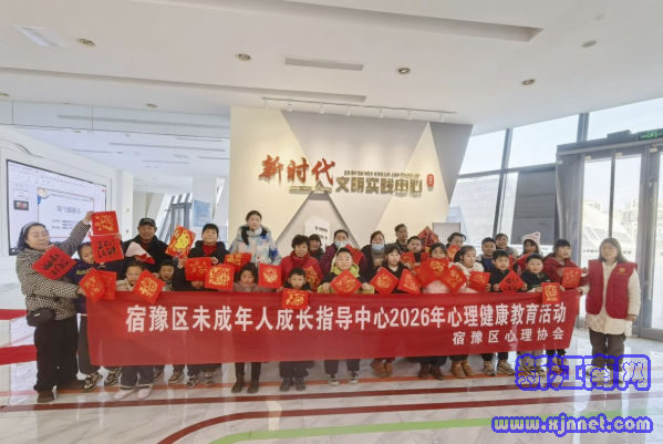 中国江苏网2月13日宿迁讯 一支毛笔拴四根绳,四个娃各拉一根——这福字还能写好吗?2月12日上午,一场别开生面的“迎新年,福气圈圈乐”主题体验活动在宿豫区新时代文明实践中心火热开展。活动摒弃传统个人书写模式,独创“四绳协力写福字”环节,宿豫区心理协会志愿者老师让孩子们在拉扯磨合中感受协作之难、在反复试错中习得坚持之力,将抗挫力训练悄然融进笔墨书香。