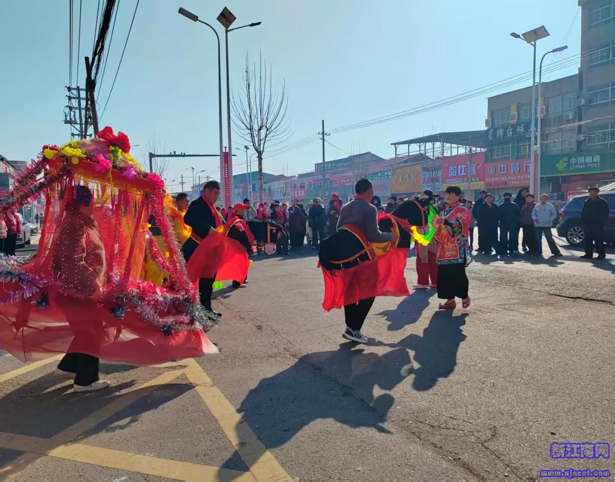 圆圆的脑袋,神气的眼神,昂首阔步,活灵活现的舞狮组合一出场便惊艳全场,只见它们身着彩色霞帔,时而跳跃、时而翻滚、时而嬉戏,动作神态惟妙惟肖,灵动威武,一招一式都引得现场观众拍手叫好,欢呼声一浪高过一浪。最具乡土风情的旱船与跑驴表演,成为现场吸睛的亮点之一,表演者身系彩饰旱船、手牵布偶毛驴,迈着轻盈诙谐的步伐,眉眼含笑,表演者忽快忽慢,时而挠挠观众,时而做个笑脸,与身边的村民逗趣互动,引得大家开怀大笑;扇子舞扇舞轻盈灵动、婀娜多姿,秧歌节奏明快、气势昂扬,精彩创意舞蹈同台绽放,传统民俗与现代元素交融碰撞,为双店新春增添别样活力。