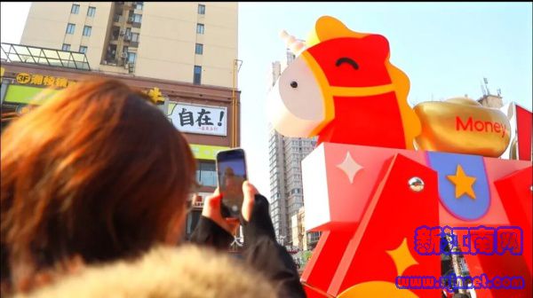 壹捌夜市与彭城壹号交汇处,一座五六米高的新春大木马驮着金元宝惊艳亮相,“马上有钱”主题美陈饱含新春祝福,成为市民游客打卡拍照的热门点位。文庙街区入口处,创意装饰将普通石墩变身巨型“费列罗”造型,以甜蜜氛围开启马年新春。