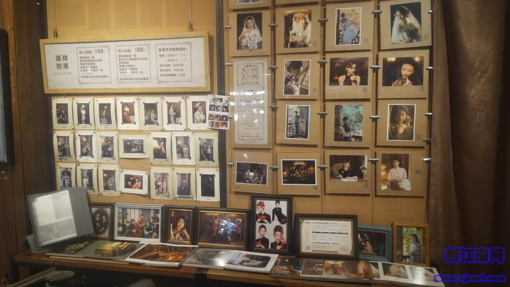 在一家经营整十年的城南旧影照相馆里,从旗袍、发簪到珍珠配饰等应有尽有,门店四周墙上挂满了复古风的人物相片,透着当代写真摄影店少见的、温柔的岁月静好。