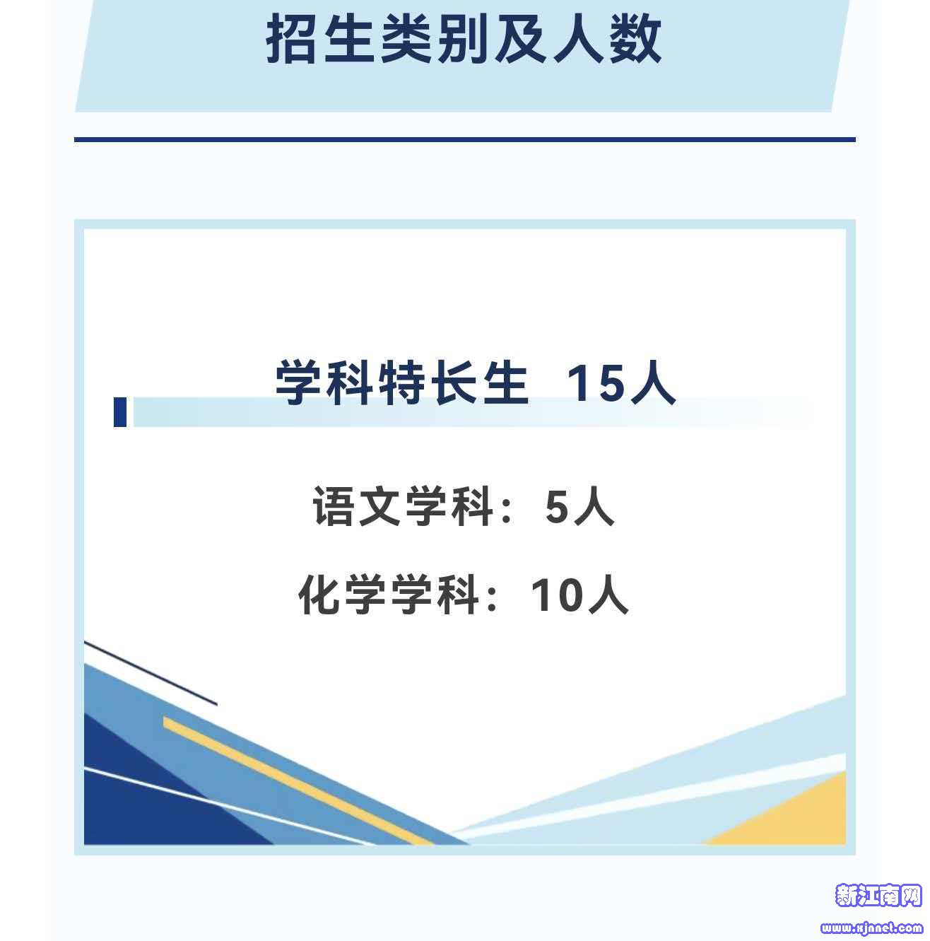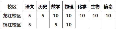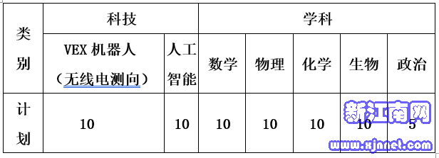 学科特长生:语文学科5人,数学学科10人,物理学科10人,化学学科10人,生物学科10人,信息学学科10人