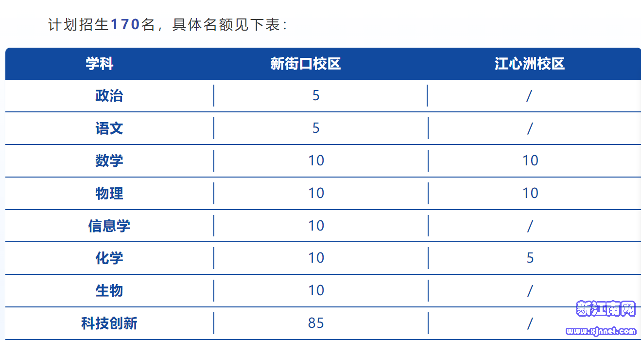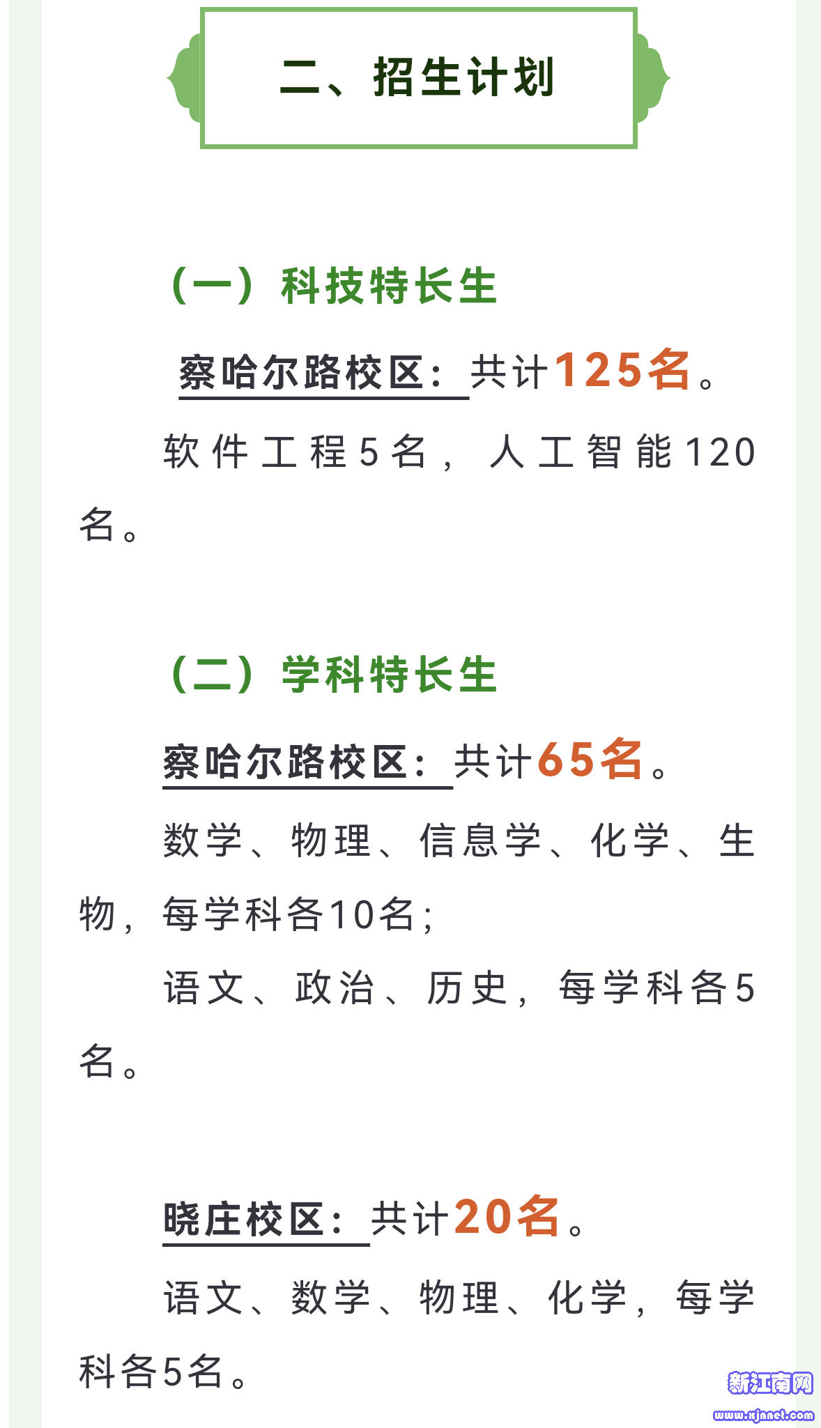 面向江宁区和南京原市区招收在科技,数学、物理、化学、生物、政治学科中有特长或具有发展潜力的应届优秀初中毕业生。