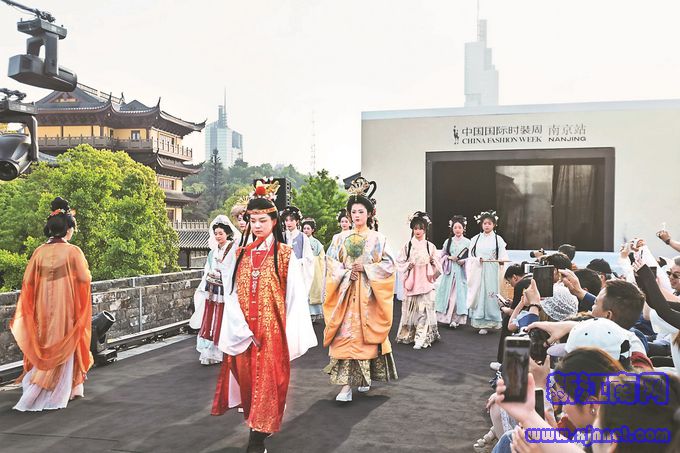 4月25日,中国国际时装周南京站首度登临南京城墙台城景区。活动以“古今同裳”为核心脉络,聚焦南京本土文化并融入现代时尚表达,为观众呈现了一场融合传统与潮流的文化时尚盛宴。图为大秀现场。 孙忠南 摄 (视觉江苏网供图)