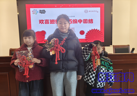 活动室里,红绳翻飞间,既有亲子家庭互帮互助的热闹,又有孩子们好奇模仿的童真。志愿者们则分工协作,为居民分发彩绳、剪刀、珠子等材料,及时解答疑问,确保每位参与者都能跟上节奏。指尖灵动间,一根根普通的彩绳渐渐蜕变为造型别致的中国结。大家纷纷为作品点缀流苏、珠子与福字卡片,让每一件作品都承载着专属的新春祝福。“这是我第一次编中国结,挂在家里既喜庆又有意义!”禾禾举着自己的作品,脸上满是自豪。活动尾声,孩子们手持亲手编织的中国结合影留念,红色的绳结映衬着一张张笑脸,定格成社区最温暖的新春图景。不少居民还互相赠送作品,以结为媒传递邻里温情,现场暖意融融。