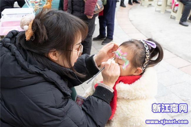 文艺汇演的余韵未散,非遗体验区早已人头攒动,面塑、糖画、草编、剪纸、吹糖人、面部彩绘、云锦布贴画七大非遗项目齐聚,让居民近距离感受传统技艺的魅力。非遗传承人巧手翻飞,一团团彩泥转眼变成栩栩如生的龙马造型,一勺勺糖稀在石板上勾勒出灵动的糖画,剪刀在彩纸间穿梭,一幅幅寓意吉祥的剪纸跃然纸上,吹糖人摊位前更是围满了孩子,看着糖稀变成可爱的小动物,满是惊喜。孩子们脸上绘着喜庆的图案,家长和孩子一同体验云锦布贴画,将传统美意融入指尖,非遗技艺在互动体验中得以传承,也让新春多了几分文化韵味。