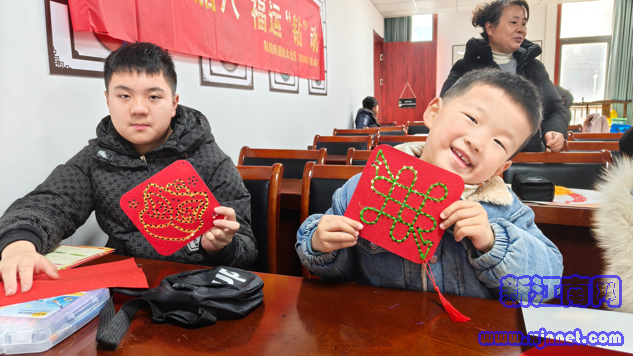 活动现场暖意融融、年味十足。在志愿者的耐心指导下,大家围坐一起动手创作:穿针、绕线、定型,一根根红绳在指尖穿梭缠绕,化作精致喜庆的中国结装饰板,搭配萌马图案与吉祥纹样,寄托着马年顺遂、阖家安康的美好心愿。孩子们专注认真,家长们悉心协助,邻里间相互交流技巧、分享创意,欢声笑语不断。