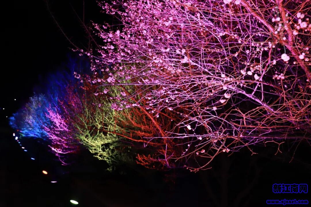 精品梅林特设夜梅观赏区,灯光映梅影,暗香随风来,夜晚的梅花多了几分朦胧诗意,随手一拍都是氛围感大片,解锁赏梅新方式~