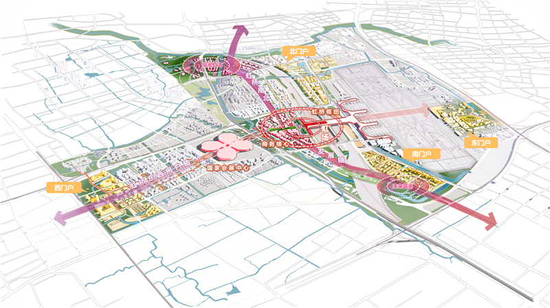 《专项规划》在虹桥商务区151平方公里范围的基础上,重点处理好虹桥商务区与中心城、三个新城的关系,规划范围扩展至535平方公里,着力将虹桥国际中央商务区和周边地区打造成为新时代国际开放门户枢纽发展示范区。