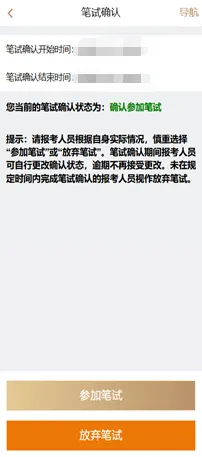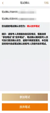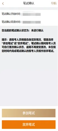 注意:成功完成报名信息提交,并在笔试确认阶段选择“参加笔试”(确认状态显示为:确认参加笔试)的人员方可视为报名成功。