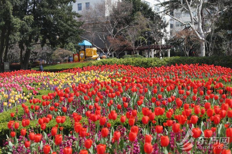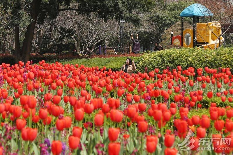 (眼下正值郁金香的花期,襄阳公园化作一片花海。本文摄影柏可林)