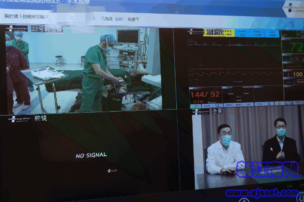 上午10点,记者通过5G技术,观摩了马海涛团队开展单孔3D胸腔镜手术。在大屏幕上,手术室内的心电图都清晰可见。