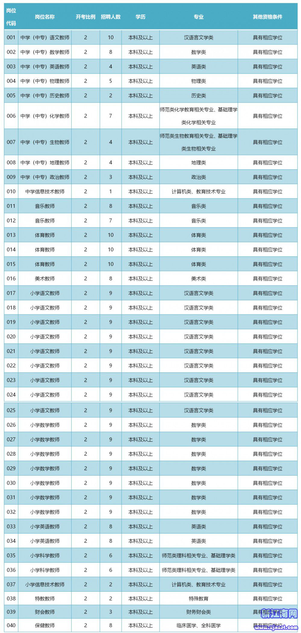 3.本次招聘允许具有高学段教师资格证的考生报考低学段相应专业学科的岗位。
