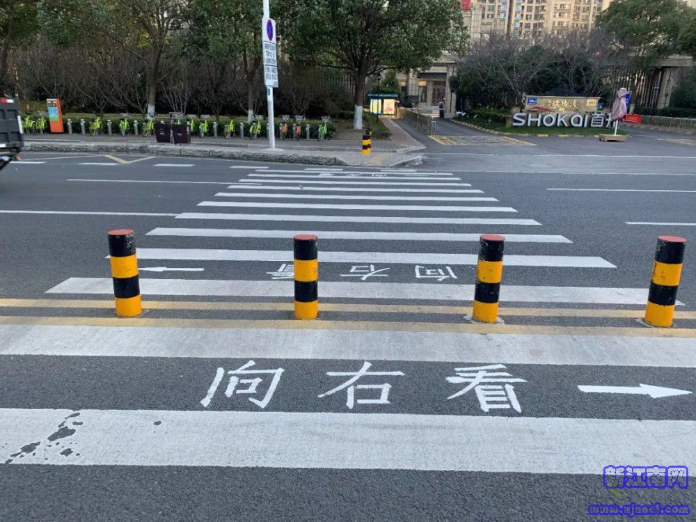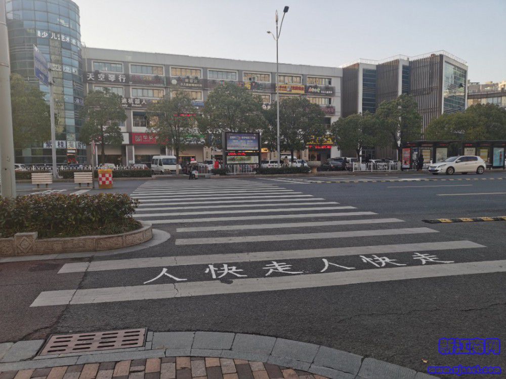 对路段上的斑马线进行升级,规范设置菱形人行道预告标识,在停止线内喷涂“车让人”字样的基础上,增设“人快走”字样,提高路段通行效率,营造“车让人、人让车”,相互礼让的文明交通氛围。