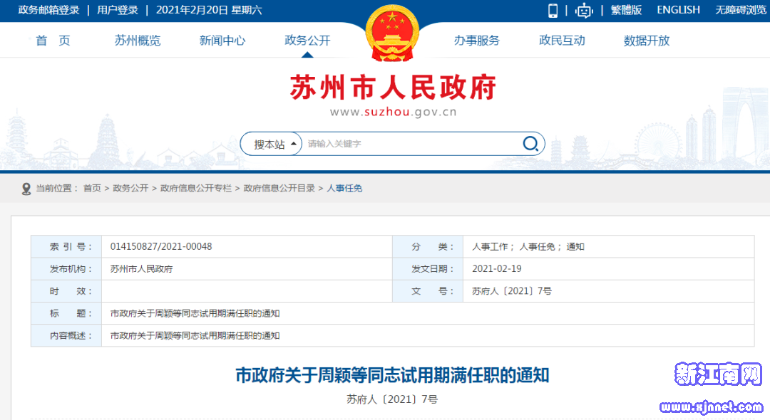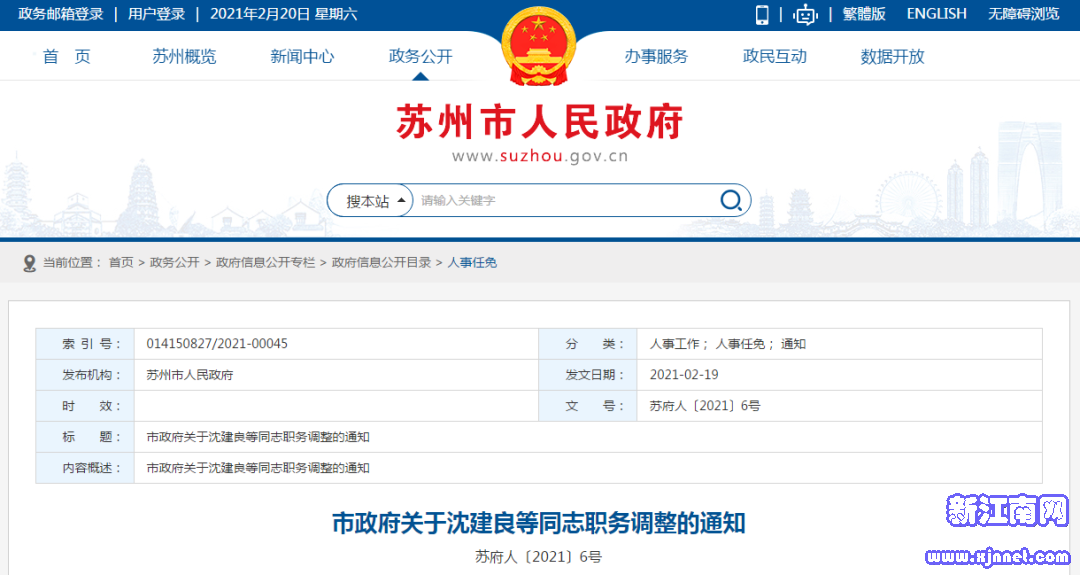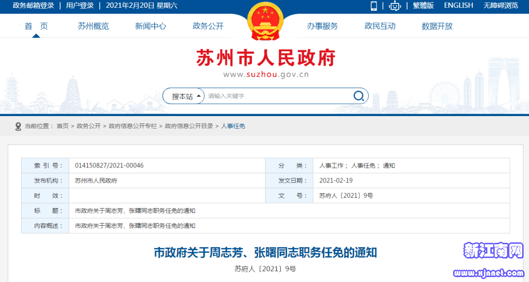 近日,苏州市人民政府发布通知调整了一批同志的职务。