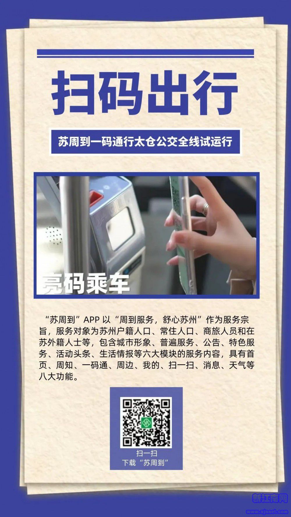 在太人员可下载“苏周到”APP,完成注册,开通电子卡并签约支付宝支付,即可使用一码通在太仓公交上扫码乘车。