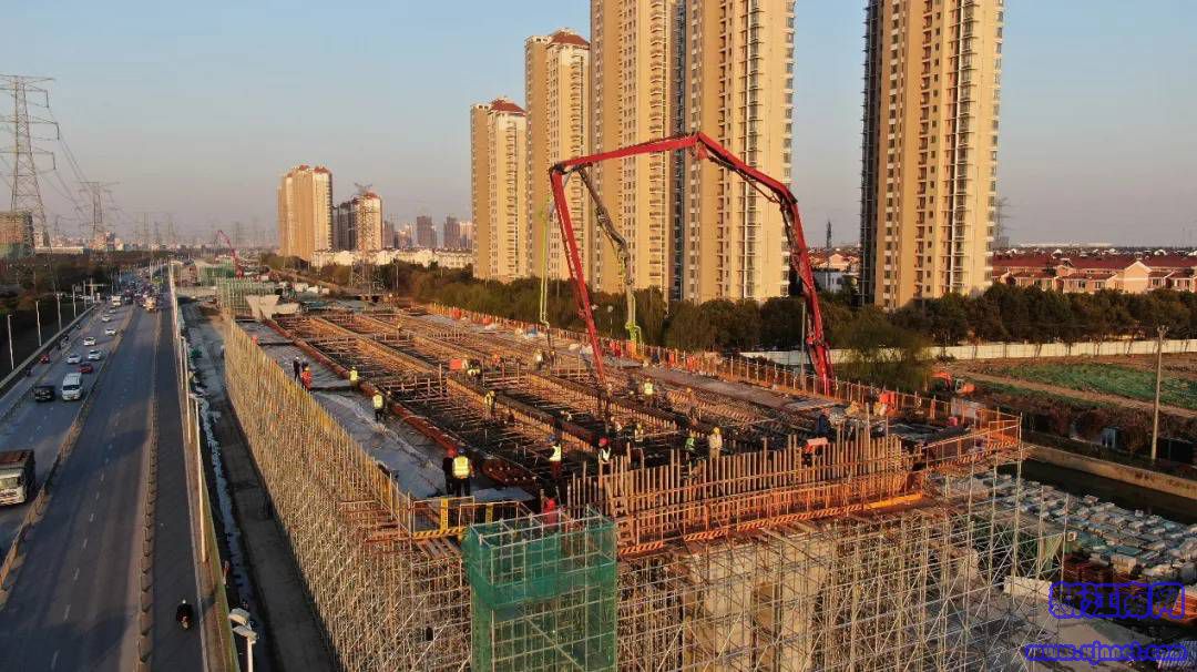 3月22日,经过14小时的连续施工,南湖路快速路东延工程(园区段)首联箱梁底、腹板顺利浇筑完成,标志着本工程正式进入上部结构施工阶段。