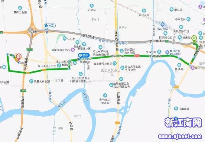 黄牌货车普通公路绕行路线为:昆山收费站-G312-江浦路-元丰路-新城南路-吴淞江工业园收费站。