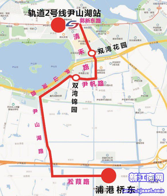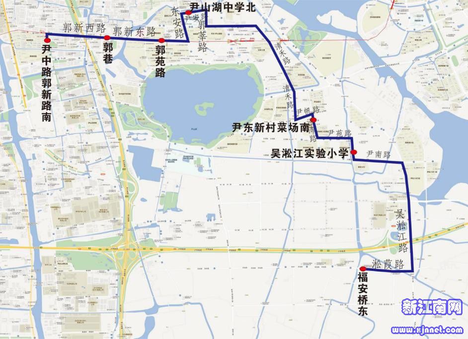 停靠站点:尹中路郭新路南、郭巷、郭苑路、尹山湖中学北、尹东新村菜场南、吴淞江实验小学、福安桥东