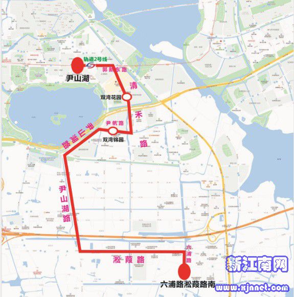 线路走向:郭新东路、清禾路、尹南路、尹山湖路、淞葭路、六浦路
