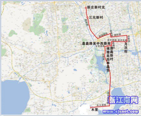 停靠站点:新庄新村北、三元新村、月浜街、盘蠡路吴中西路南、盘蠡新村、博雅苑四季晶华、木里