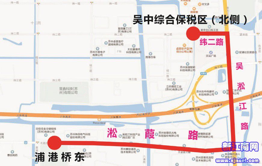 线路走向:吴中综合保税区、纬二路、吴淞江路、淞葭路