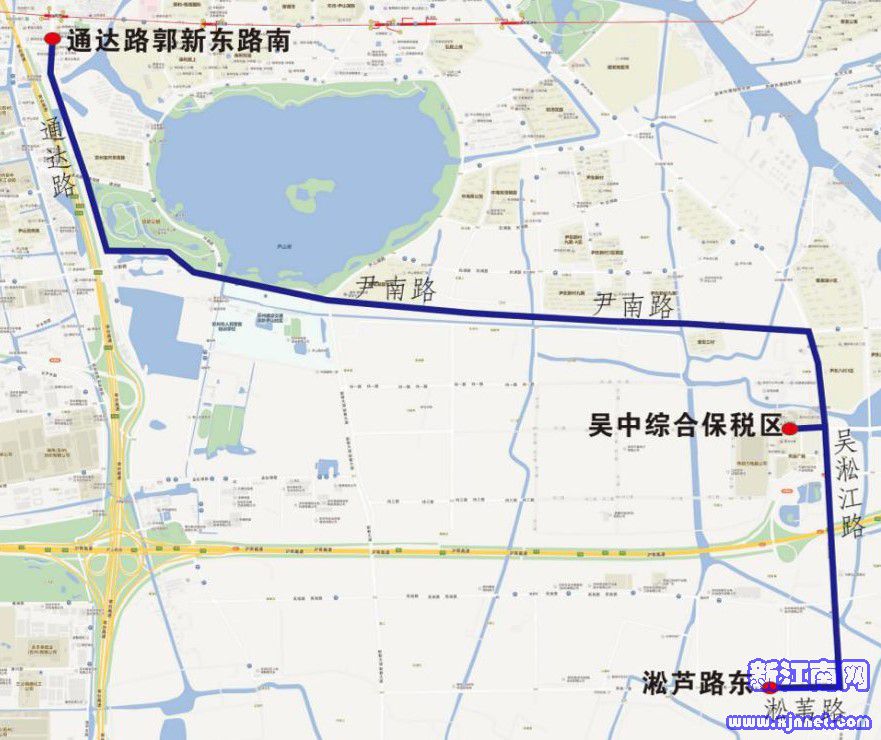 线路走向:通达路郭新东路南、通达路、尹南路、吴淞江路、淞苇路、淞芦路东