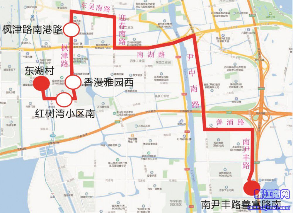 停靠站点:邵昂路东、枫津南路南港路、适新科技、尹中路、尹山湖美术馆、吴中综合保税区、福安桥东(北侧)