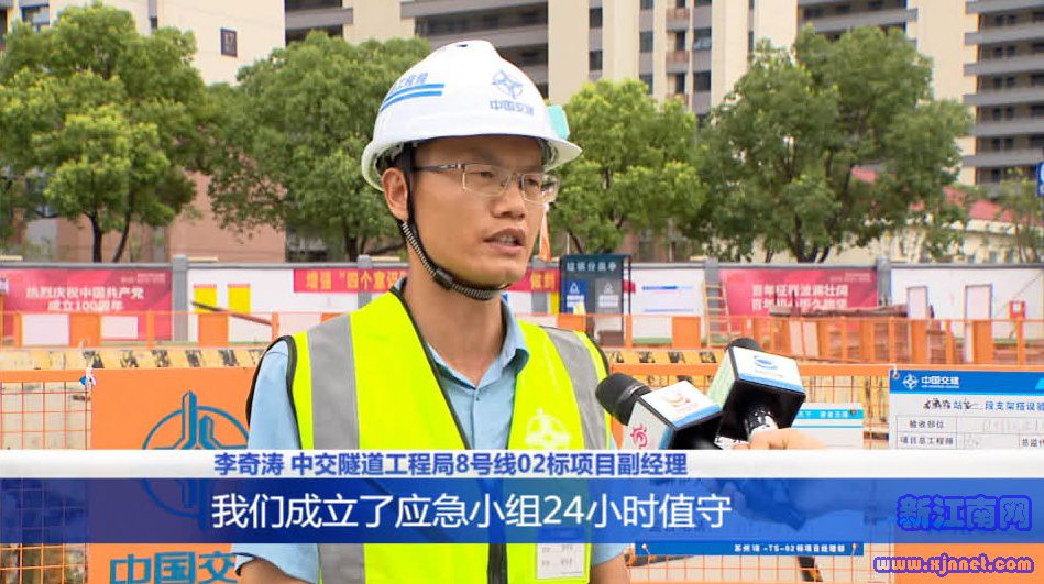 中交隧道工程局8号线02标项目副经理李奇涛介绍,相关方面成立了应急小组开展24小时值守,一旦风速达到6级以上,将停止现场作业,并将吊车大臂全部放下。